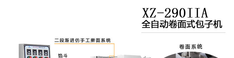 XZ-290IIA包子機(jī),可生產(chǎn)各種不同餡料的包子、各式包餡食品,如豆沙包、南瓜餅、肉包、小籠包、水晶包等幾十種包餡制品。適用于個體戶、食品廠、學(xué)校等單位食堂。可滿足不同客戶群體。免費提供工藝技術(shù)。
