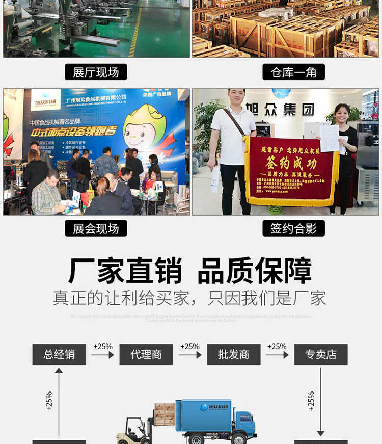 廣州旭眾食品機械有限公司是一家集科研開發(fā),生產(chǎn)設計,營銷服務為一體的現(xiàn)代化生產(chǎn)企業(yè)?,F(xiàn)代化生產(chǎn)車間,精湛制造技術,所產(chǎn)機械歷經(jīng)市場重重考驗,不斷贏得海內(nèi)外客戶的贊譽。