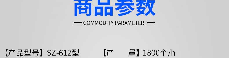 名稱SZ-612型全自動包子機 電源220V/380V 功率1.55KW 產(chǎn)量1800個/h 尺寸1720×640×1460(包括輸送帶 重量248 規(guī)格20-130g/個 其他