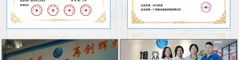 廣州旭眾食品機械有限公司是一家集科研開發(fā),生產(chǎn)設(shè)計,營銷服務(wù)為一體的現(xiàn)代化生產(chǎn)企業(yè)。現(xiàn)代化生產(chǎn)車間,精湛制造技術(shù),所產(chǎn)機械歷經(jīng)市場重重考驗,不斷贏得海內(nèi)外客戶的贊譽。