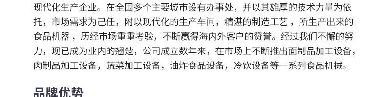 廣州旭眾食品機械有限公司是一家集科研開發(fā),生產設計,營銷服務為一體的現代化生產企業(yè)?,F代化生產車間,精湛制造技術,所產機械歷經市場重重考驗,不斷贏得海內外客戶的贊譽。