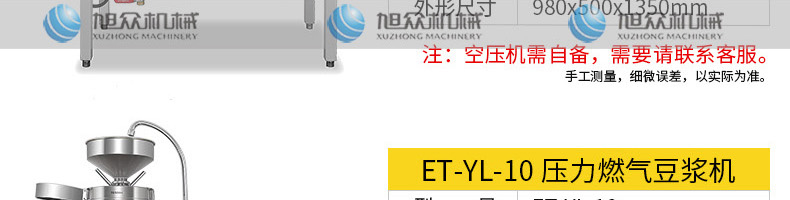 ET-YL-09壓力電熱豆?jié){機(jī),多功能商用豆?jié){機(jī),細(xì)、香、濃。我們珍惜每一顆大豆,讓每顆大豆進(jìn)發(fā)營(yíng)養(yǎng)價(jià)值。旭眾豆?jié){機(jī)做您的招牌豆?jié){打磨細(xì)膩、口感香濃、回味無(wú)窮。