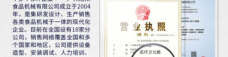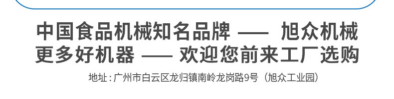 廣州旭眾食品機(jī)械有限公司是一家集科研開(kāi)發(fā),生產(chǎn)設(shè)計(jì),營(yíng)銷服務(wù)為一體的現(xiàn)代化生產(chǎn)企業(yè)?,F(xiàn)代化生產(chǎn)車間,精湛制造技術(shù),所產(chǎn)機(jī)械歷經(jīng)市場(chǎng)重重考驗(yàn),不斷贏得海內(nèi)外客戶的贊譽(yù)。
