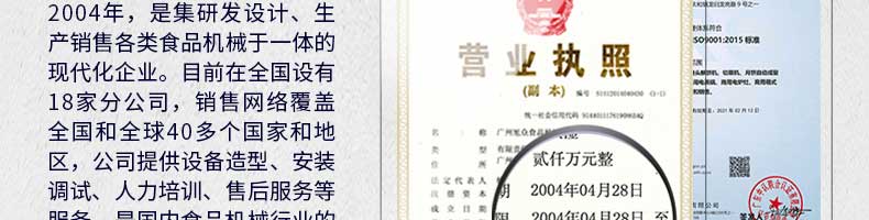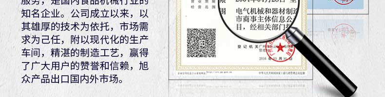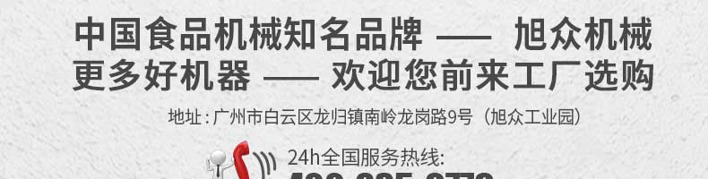 廣州旭眾食品機械有限公司是一家集科研開發(fā),生產(chǎn)設計,營銷服務為一體的現(xiàn)代化生產(chǎn)企業(yè)?,F(xiàn)代化生產(chǎn)車間,精湛制造技術(shù),所產(chǎn)機械歷經(jīng)市場重重考驗,不斷贏得海內(nèi)外客戶的贊譽。