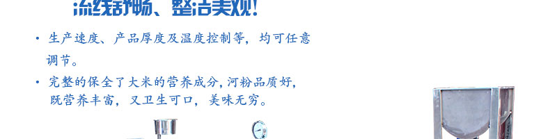 SZ-HF-80高效節(jié)能河粉機(jī),用高效節(jié)能河粉機(jī)生產(chǎn)的河粉,完整保全了大米的營養(yǎng)成分,河粉品質(zhì)一流,既營養(yǎng)豐富,又衛(wèi)生可口、美味無窮。