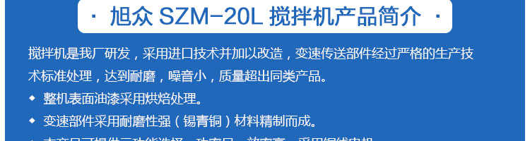 名稱SZM-20型四功能攪拌機(jī) 電源220V 功率1.1kw 產(chǎn)量 尺寸外形尺寸550*420*780mm 重量98kg 規(guī)格 其他