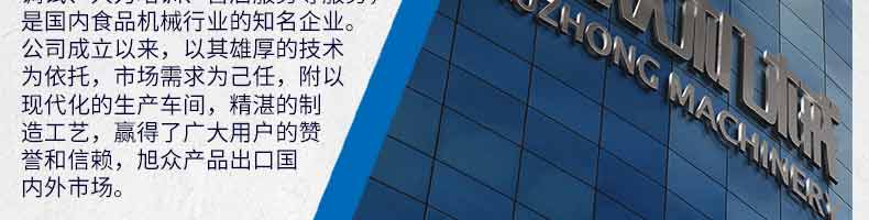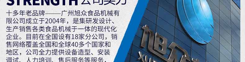 廣州旭眾食品機(jī)械有限公司是一家集科研開發(fā),生產(chǎn)設(shè)計(jì),營銷服務(wù)為一體的現(xiàn)代化生產(chǎn)企業(yè)。現(xiàn)代化生產(chǎn)車間,精湛制造技術(shù),所產(chǎn)機(jī)械歷經(jīng)市場(chǎng)重重考驗(yàn),不斷贏得海內(nèi)外客戶的贊譽(yù)。