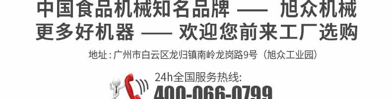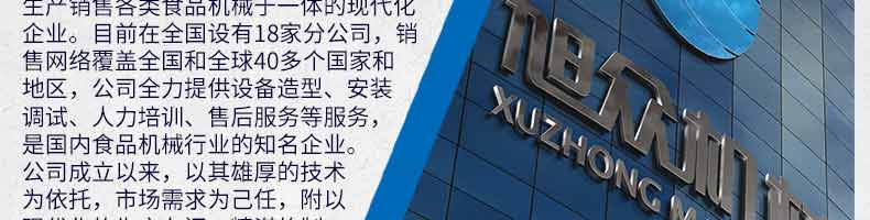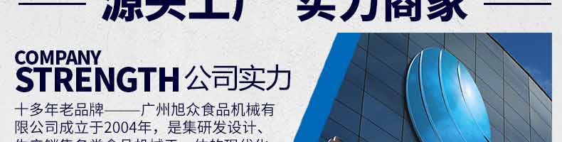 廣州旭眾食品機(jī)械有限公司是一家集科研開發(fā),生產(chǎn)設(shè)計(jì),營銷服務(wù)為一體的現(xiàn)代化生產(chǎn)企業(yè)?,F(xiàn)代化生產(chǎn)車間,精湛制造技術(shù),所產(chǎn)機(jī)械歷經(jīng)市場重重考驗(yàn),不斷贏得海內(nèi)外客戶的贊譽(yù)。