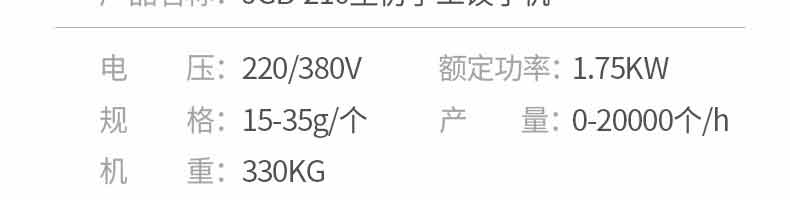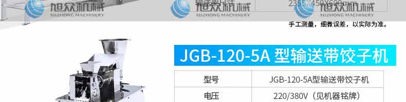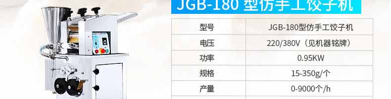 JGB-210型仿手工餃子機,本機采用自動壓面皮包餃子的新工藝技術,本機可生產(chǎn)速凍餃子等,能生產(chǎn)各種肉餡、肉菜混合餡、全菜餡及其他種餡的餃子,適用于餃子館、食品生產(chǎn)廠家、賓館、飯店、餐廳、團體食堂、學校、部隊。免費上門安裝調試,贈送面點工藝