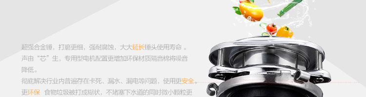 DCLQ38-廚房垃圾處理器,該機(jī)擁有獨(dú)特的粉碎功能,使所有垃圾研磨吸毒真正低于3毫米,用戶不用為管道堵塞而煩惱,粉碎后粗、細(xì)兩種垃圾通過濾孔自動分離,成漿狀的細(xì)垃圾隨水流流入管道,粗的垃圾會稍停留在研磨倉繼續(xù)粉碎,形成粉末狀后,再隨水流流入管道,客戶可以放心使用。