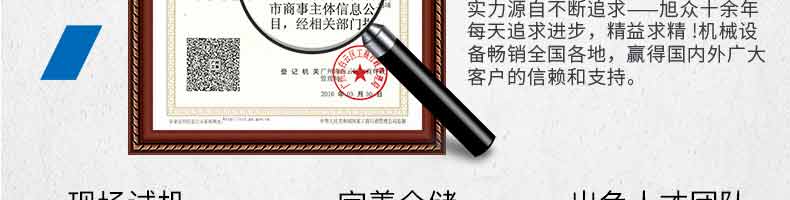 廣州旭眾食品機(jī)械有限公司是一家集科研開發(fā),生產(chǎn)設(shè)計(jì),營銷服務(wù)為一體的現(xiàn)代化生產(chǎn)企業(yè)?,F(xiàn)代化生產(chǎn)車間,精湛制造技術(shù),所產(chǎn)機(jī)械歷經(jīng)市場(chǎng)重重考驗(yàn),不斷贏得海內(nèi)外客戶的贊譽(yù)。