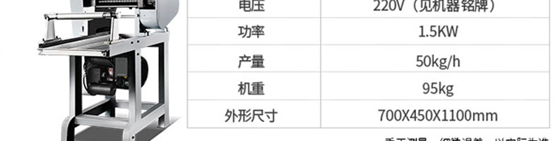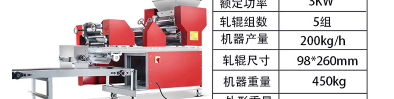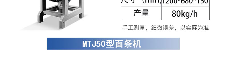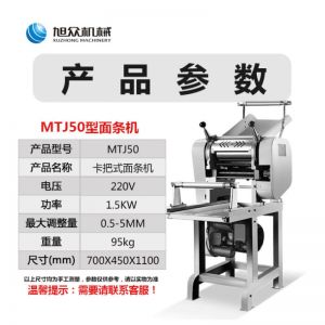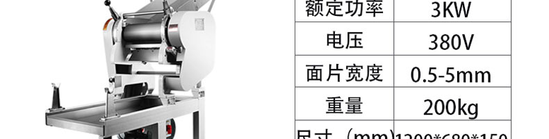 名稱50型全自動壓面面條機(jī) 電源220v 功率1.5kw 產(chǎn)量50kg/h 尺寸700*450*1100mm 重量95kg 規(guī)格 其他