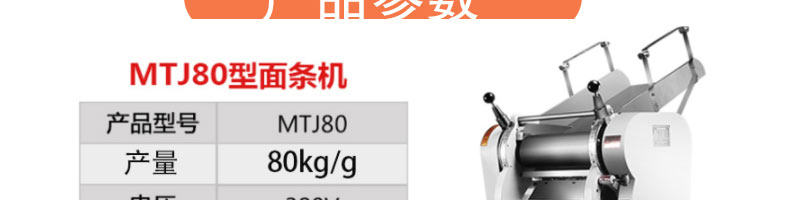 名稱80型全自動(dòng)壓面面條機(jī) 電源380v 功率3kw 產(chǎn)量80kg/g 尺寸1200*680*150mm 重量200kg 規(guī)格 其他