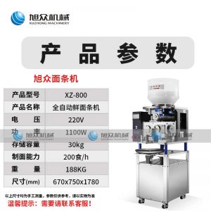 名稱XZ-800全自動鮮面條機(jī) 電源220V 功率電機(jī)功率:11KW 產(chǎn)量制面能力:200食/h 尺寸670X750X1780mm 重量188kg 規(guī)格聯(lián)系銷售員 其他存儲容量:30kg