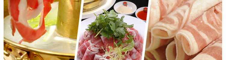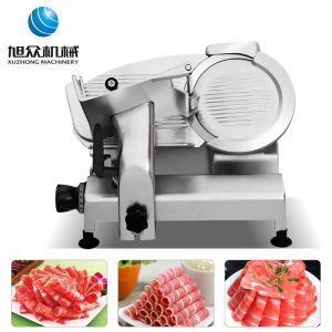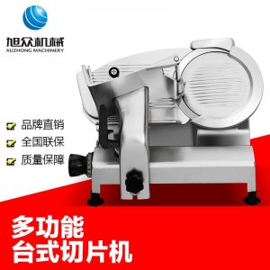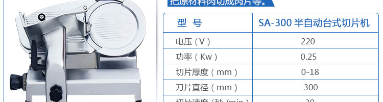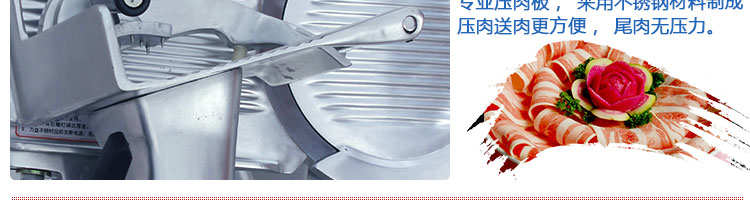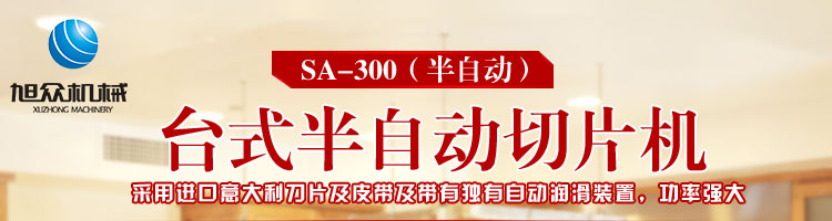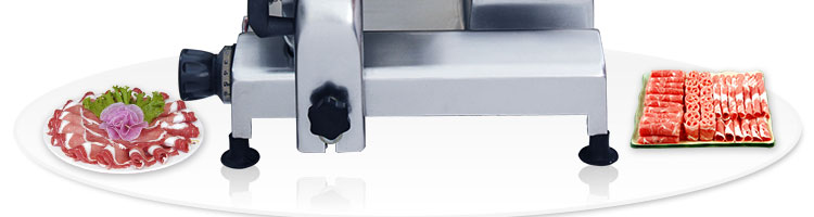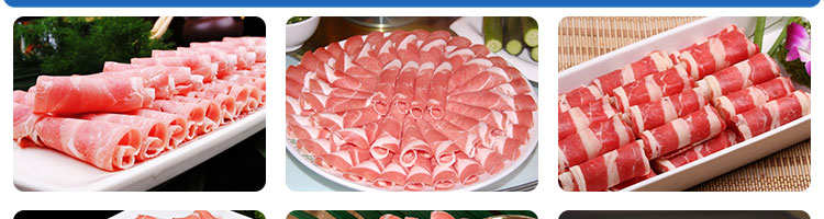 臺式半自動切片機,適合切無骨肉類和其他類似榨菜帶有彈性的食物,把原材料肉切成肉片,并可自動成卷狀??汕信H馄?、羊肉片等