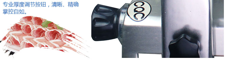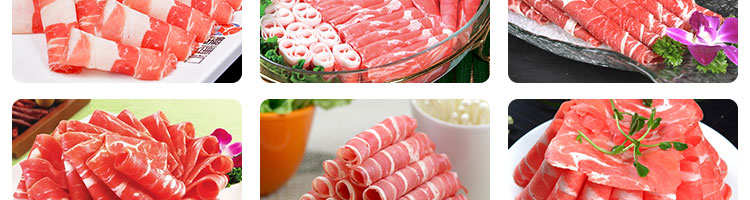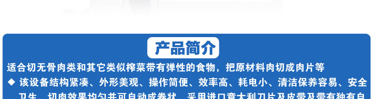 臺(tái)式全自動(dòng)切片機(jī),適合切無(wú)骨肉類和其他類似榨菜帶有彈性的食物,把原材料肉切成肉片,并可自動(dòng)成卷狀??汕信H馄?、羊肉片等