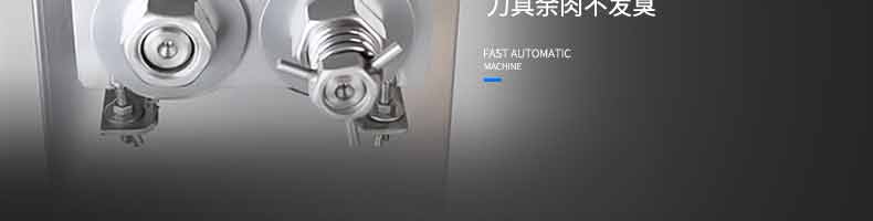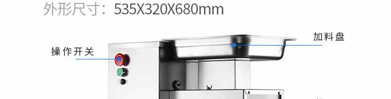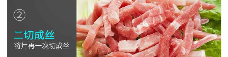 XZ-QX320-切肉機(jī),小型切肉機(jī)是一款主要對肉類進(jìn)行加工的設(shè)備,配置單層刀具一次性切肉片,二次切肉絲,再切成料。刀具采取外置懸臂式設(shè)計,拆洗方便,衛(wèi)生更有保障;配置多種刀具,可加工不同厚度的肉片,實現(xiàn)一機(jī)多用;機(jī)內(nèi)裝有安全保護(hù)開頭,刀具外露時,機(jī)器自鎖不能啟動,以保安全;卸下的刀具,不用清洗直接放置在6攝氏度以下的冰箱里,刀具余肉不發(fā)臭。刀片用特殊不銹鋼材料制造,經(jīng)久耐用。