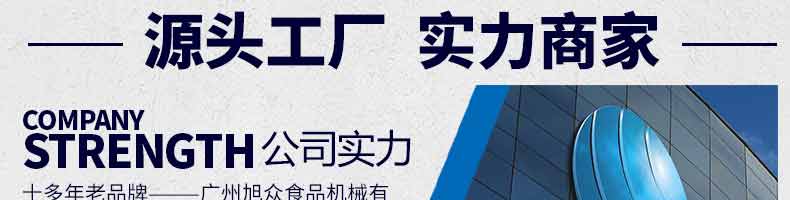 廣州旭眾食品機(jī)械有限公司是一家集科研開發(fā),生產(chǎn)設(shè)計,營銷服務(wù)為一體的現(xiàn)代化生產(chǎn)企業(yè)。現(xiàn)代化生產(chǎn)車間,精湛制造技術(shù),所產(chǎn)機(jī)械歷經(jīng)市場重重考驗,不斷贏得海內(nèi)外客戶的贊譽(yù)。
