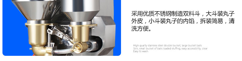 SZ-602包心肉丸機,可生產(chǎn)包心魚丸、包心豬肉丸、撒尿牛肉丸、爆汁小魚丸等多種球形醬湯類包餡產(chǎn)品。操控性強、穩(wěn)定性高、出品率穩(wěn)定;可抽皮增餡,做到皮薄餡多。