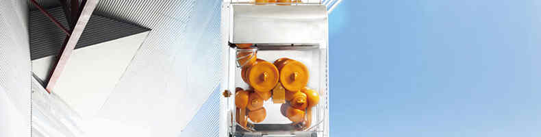2000C-4全自動榨橙汁機,該鮮橙榨汁機采取擠壓式,鮮橙經消毒、漂洗后,直接進入機器 ,自動剝皮、榨汁、過濾,現(xiàn)榨現(xiàn)飲,橙汁中無皮、無絲 、無籽、無渣,口感佳,所榨出的橙汁是現(xiàn)榨的原汁。