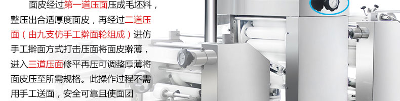 xz-15c三道搟面酥餅機,仿手工制作面食產(chǎn)品的機型,占地面積小,重量輕,運用搟面杖壓面和打擊面團,以保證高面筋性和面帶的密度,并綜合考慮面食的口感而研發(fā)??缮a(chǎn)東北糖酥餅,東北大香酥餅,蘇式月餅,芝麻餅,鮮花餅,老婆餅。購機免費提供工藝技術(shù)