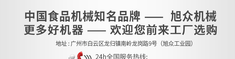 廣州旭眾食品機(jī)械有限公司是一家集科研開發(fā),生產(chǎn)設(shè)計,營銷服務(wù)為一體的現(xiàn)代化生產(chǎn)企業(yè)?,F(xiàn)代化生產(chǎn)車間,精湛制造技術(shù),所產(chǎn)機(jī)械歷經(jīng)市場重重考驗,不斷贏得海內(nèi)外客戶的贊譽。