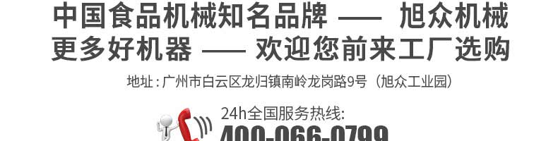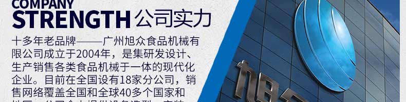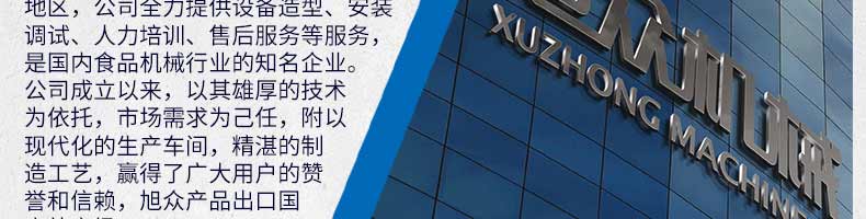 廣州旭眾食品機(jī)械有限公司是一家集科研開發(fā),生產(chǎn)設(shè)計(jì),營銷服務(wù)為一體的現(xiàn)代化生產(chǎn)企業(yè)。現(xiàn)代化生產(chǎn)車間,精湛制造技術(shù),所產(chǎn)機(jī)械歷經(jīng)市場重重考驗(yàn),不斷贏得海內(nèi)外客戶的贊譽(yù)。