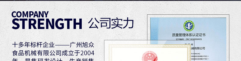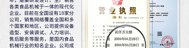 廣州旭眾食品機械有限公司是一家集科研開發(fā),生產設計,營銷服務為一體的現代化生產企業(yè)?,F代化生產車間,精湛制造技術,所產機械歷經市場重重考驗,不斷贏得海內外客戶的贊譽。