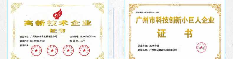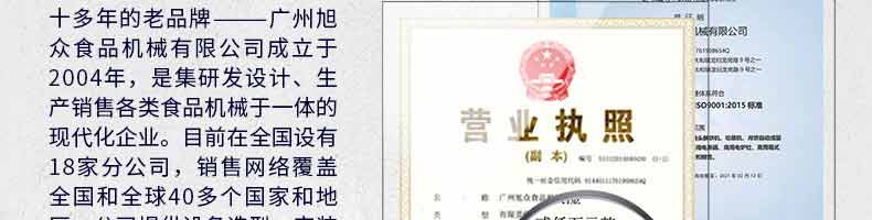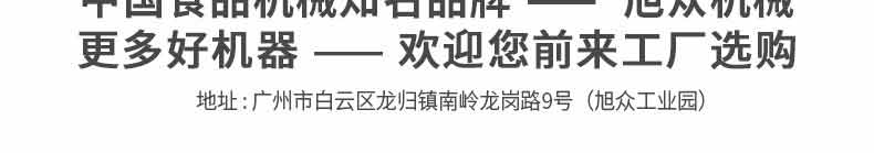 廣州旭眾食品機械有限公司是一家集科研開發(fā),生產設計,營銷服務為一體的現(xiàn)代化生產企業(yè)?,F(xiàn)代化生產車間,精湛制造技術,所產機械歷經市場重重考驗,不斷贏得海內外客戶的贊譽。