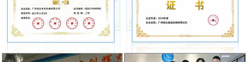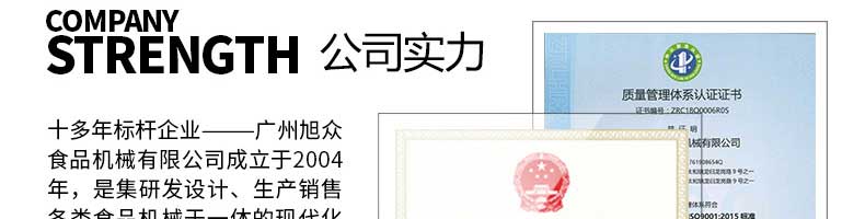 廣州旭眾食品機械有限公司是一家集科研開發(fā),生產設計,營銷服務為一體的現(xiàn)代化生產企業(yè)?,F(xiàn)代化生產車間,精湛制造技術,所產機械歷經市場重重考驗,不斷贏得海內外客戶的贊譽。