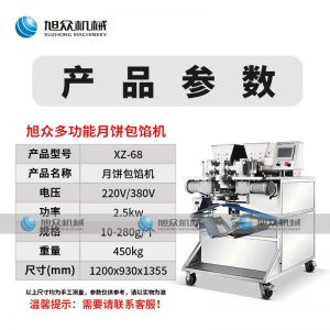XZ-68月餅包餡機,一次成型大小均勻,操作簡單,可生產豆沙、五仁、蓮蓉等餡料的包餡類產品制品皮餡比例可調,大小統